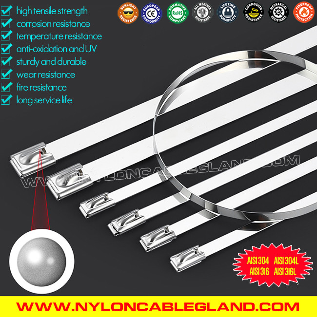 | Productnaam: | SS316L, SS316, SS304 ongecoate roestvrijstalen kabelbinders, zelfsluitende metalen kabelbanden voor ruwe gebieden |