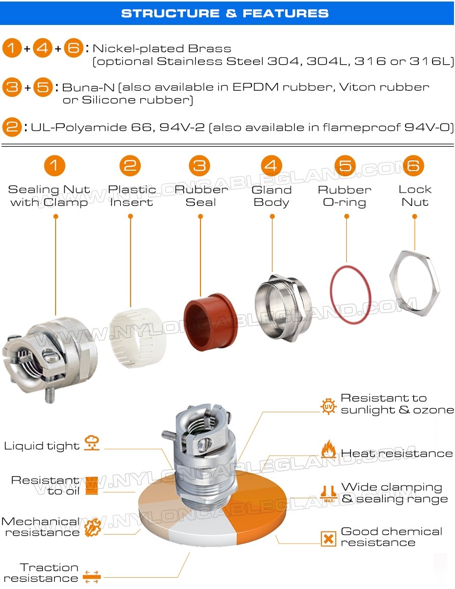 Montage klier op het vooraf geboorde paneel gat en bevestig het aan boord met locknut, voeg de kabels door de rubberen afdichting en trek dan de afdichting moer om de kabels in positie te houden,Ten slotte trek je de twee klemschroeven aan..