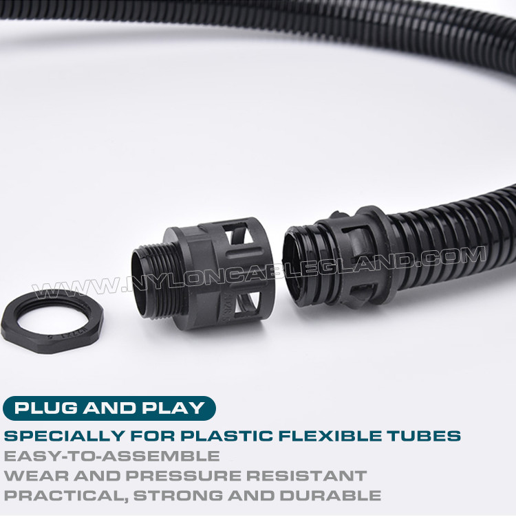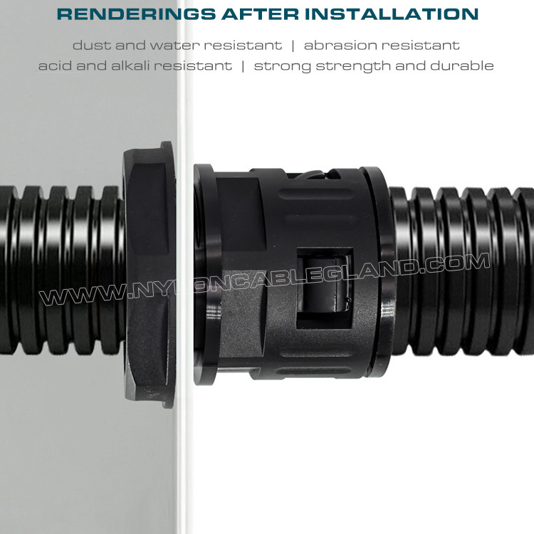 M12-M63 metrische leidingconnectoren, rechte leidingfittingen kunststof kabelwartels voor flexibele slangen AD10-AD54.5 zijn een soort verbindingsapparaat dat veel wordt gebruikt in de elektriciteitsindustrie,vloeistof- en gasleveringssystemen. Het heeft een hoge afdichtingsprestatie en wordt speciaal gebruikt voor het verbinden van golfbuizen. Het kan veilige en betrouwbare verbindingen onderhouden tijdens het vervoer van hoge temperatuur,hoge druk en corrosieve vloeistoffen of gassen.